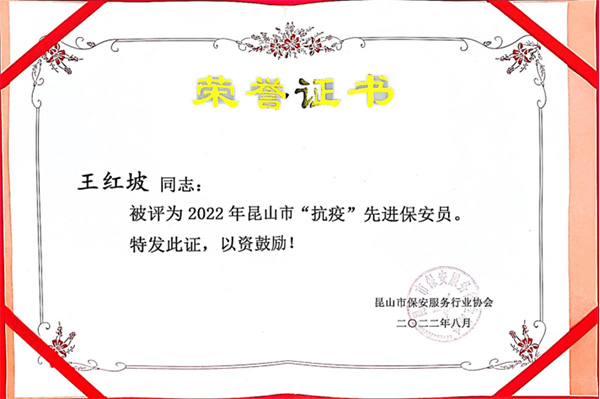 Congratulations to Comrade Wang Hongpo of Upaike Group for winning the title of Anti-epidemic Advanced Security Guard in Kunshan City 圖片 圖片 圖片