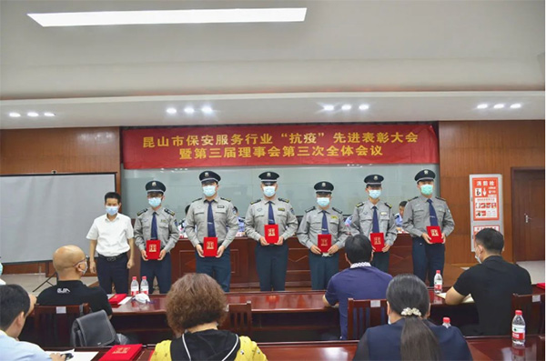 On the morning of August 10, the Kunshan Security Service Industry Association held the Kunshan Security Service Industry "Anti-epidemic" Advanced Commendation Conference and the third plenary meeting of the third council. During the period of epidemic prevention and control, the disciplined and well-managed security companies and security personnel who have worked tirelessly and bravely fought the epidemic are commended. Comrade Wang Hongpo of Hefei Security Company Upac was awarded the title of "Anti-epidemic" Advanced Security Guard in Kunshan City.